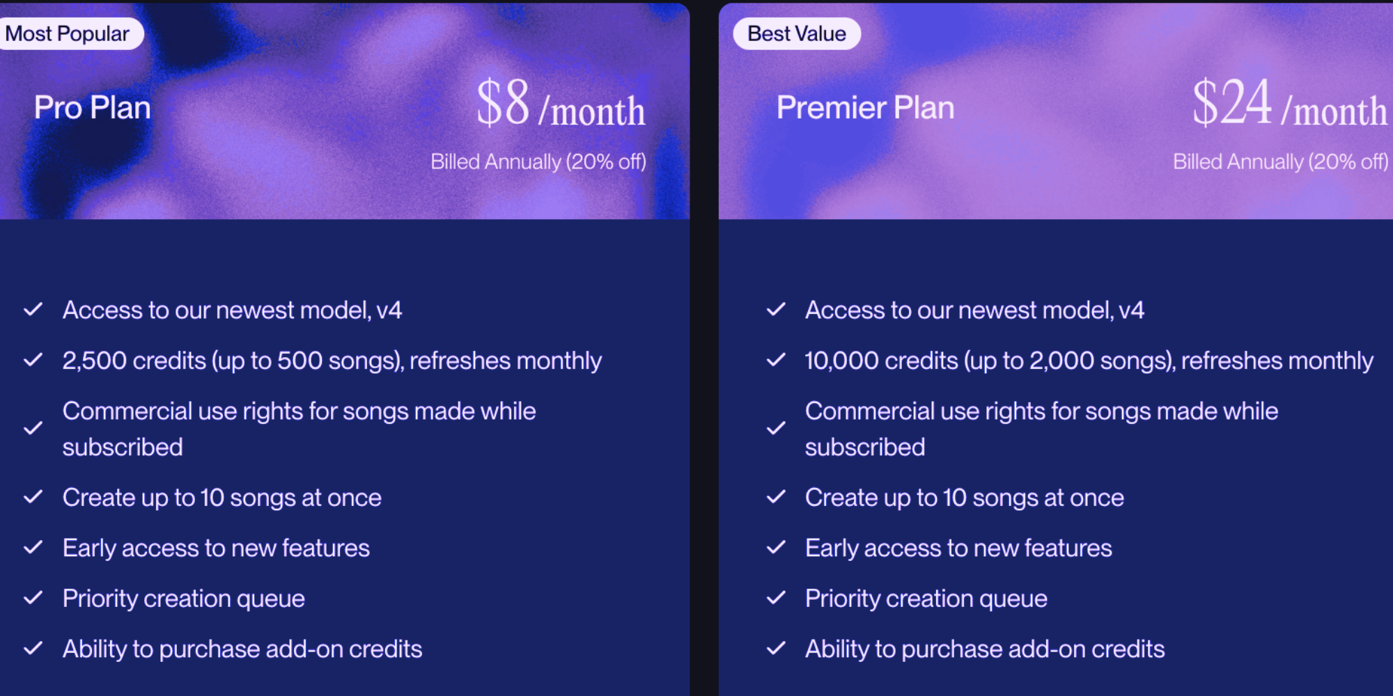 * Song Lab (Free or Pro Plan- $20/month) for turning lyrics into studio-quality songs.