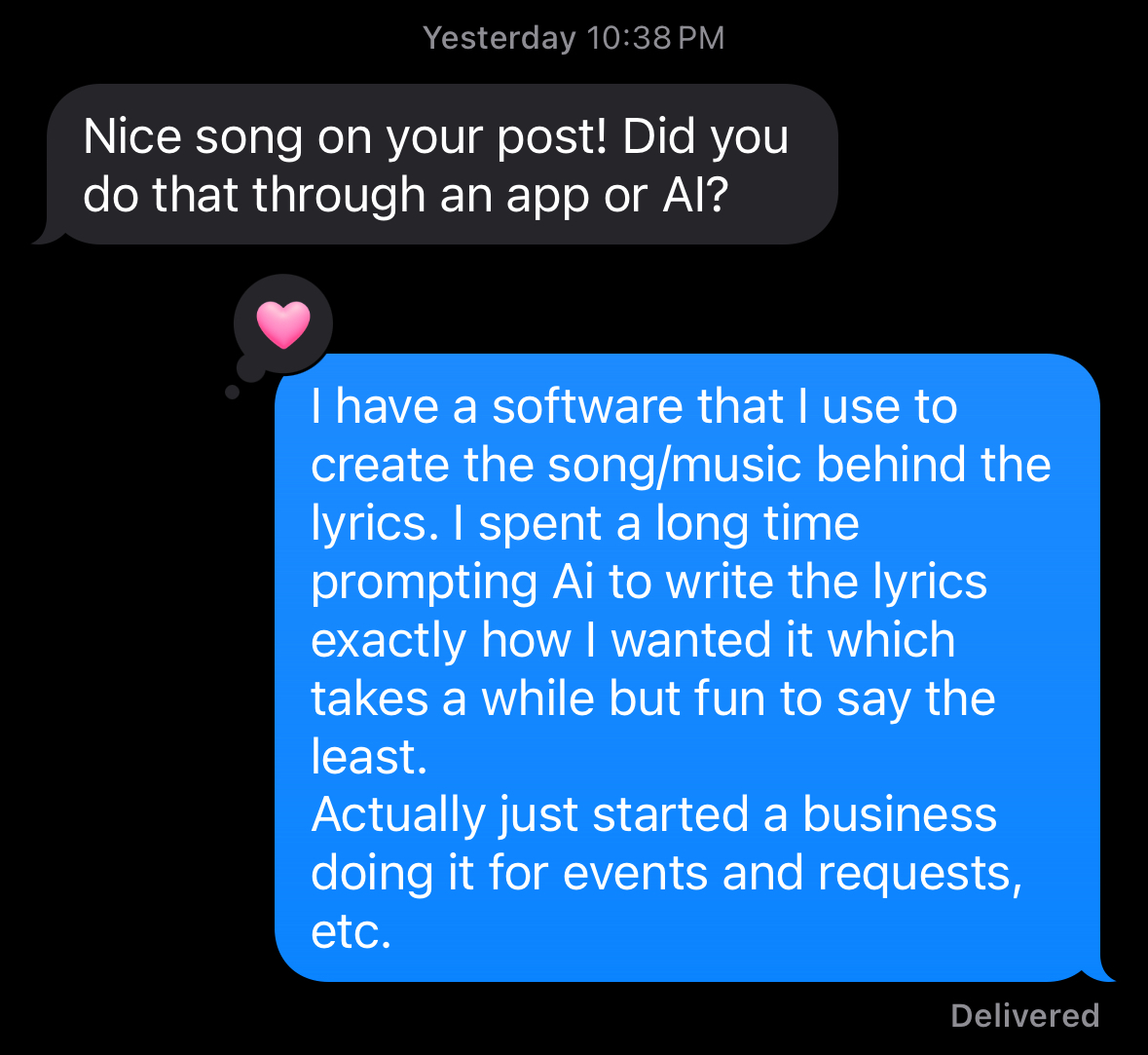 With the "Song Lab" software, you can create a song in just minutes. But here’s the difference: while AI can instantly generate music these days, the best songs come from spending a little TLC guiding the AI and making your song hit home. If you want something truly memorable-not just another generic tune, take advantage of our training and tips to help you craft a song that really stands out from the crowd of what we call “fast food music" makers.